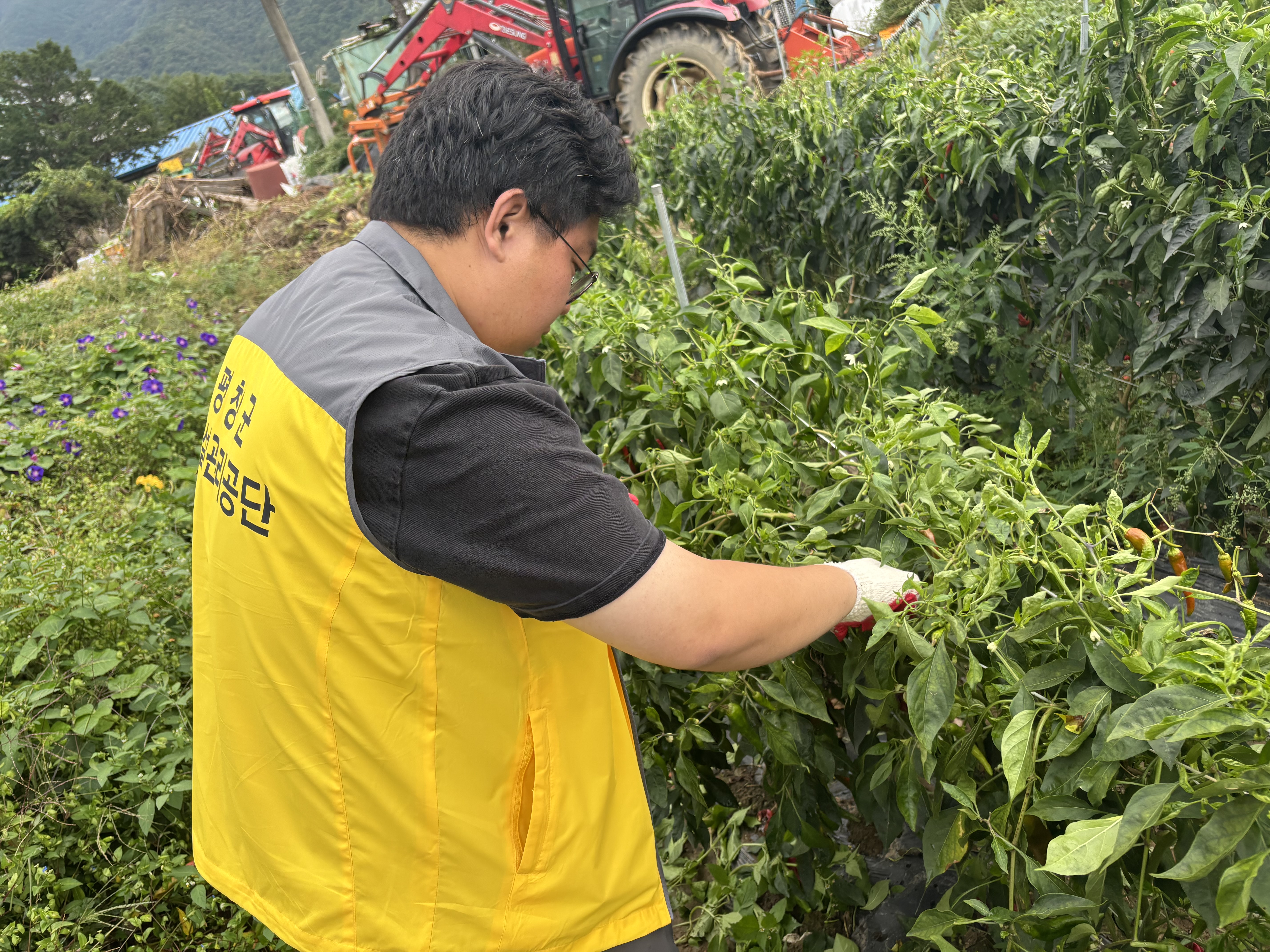 평창군시설관리공단, 추석 앞두고 독거노인 농가 고추 수확 봉사활동 펼쳐