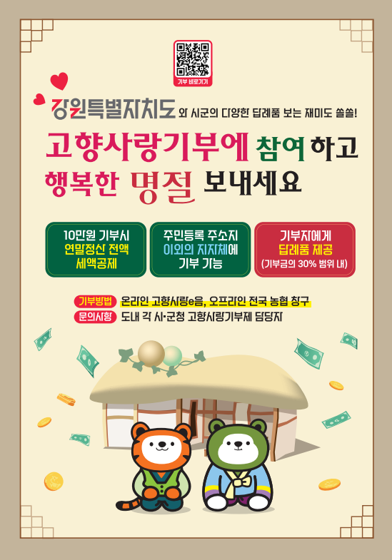 강원특별자치도, ‘고향사랑기부제’ … 명절맞이 행복 나눔 캠페인 전개