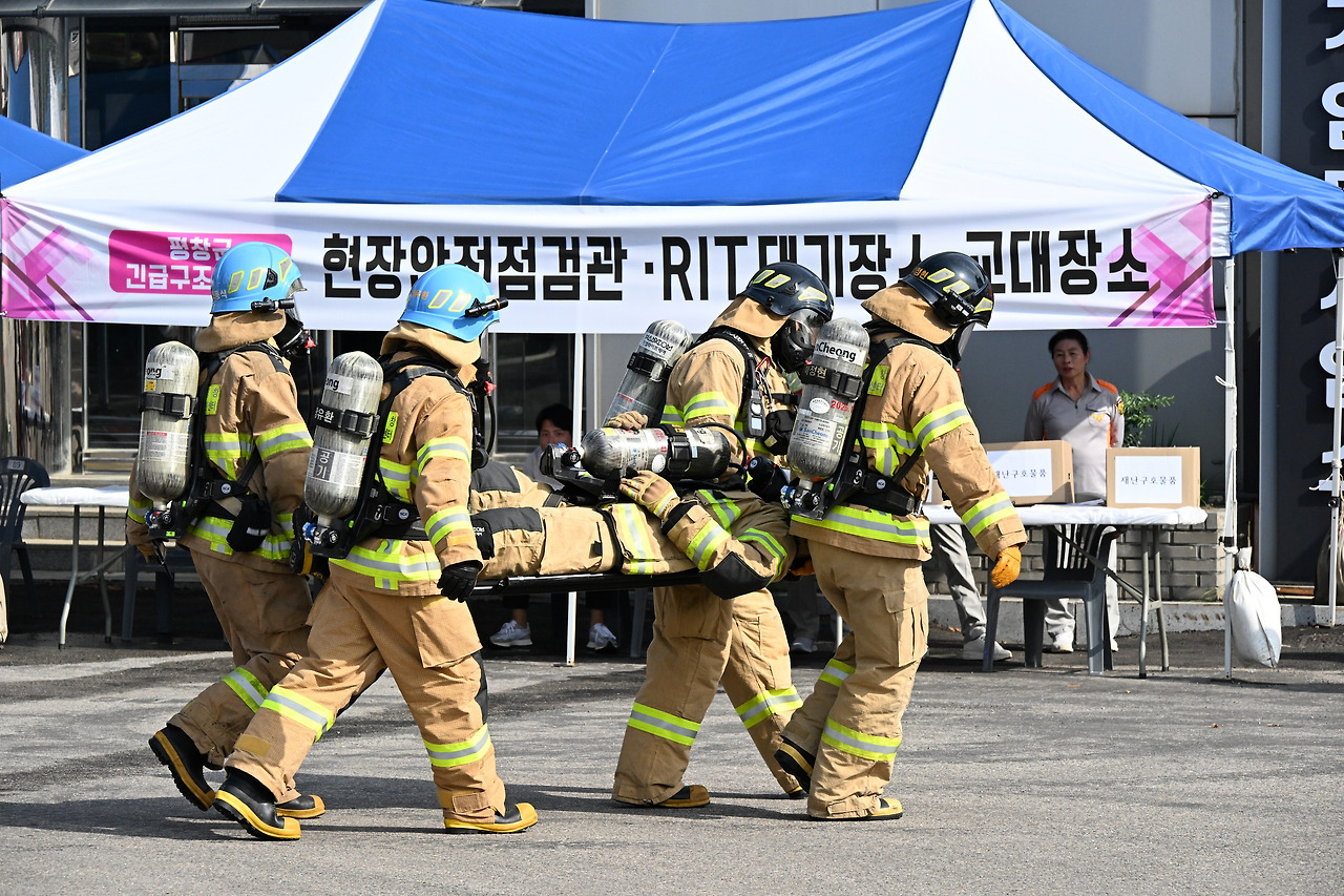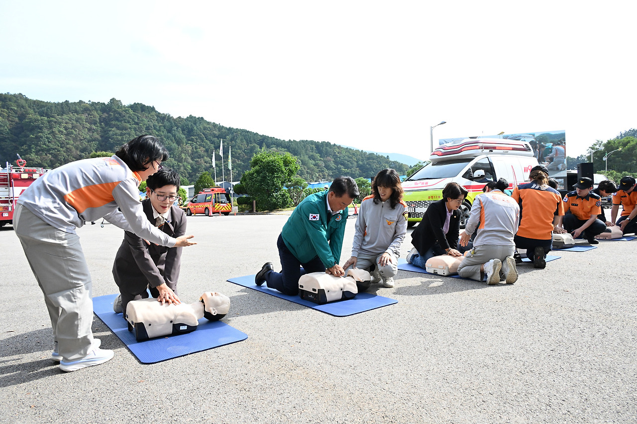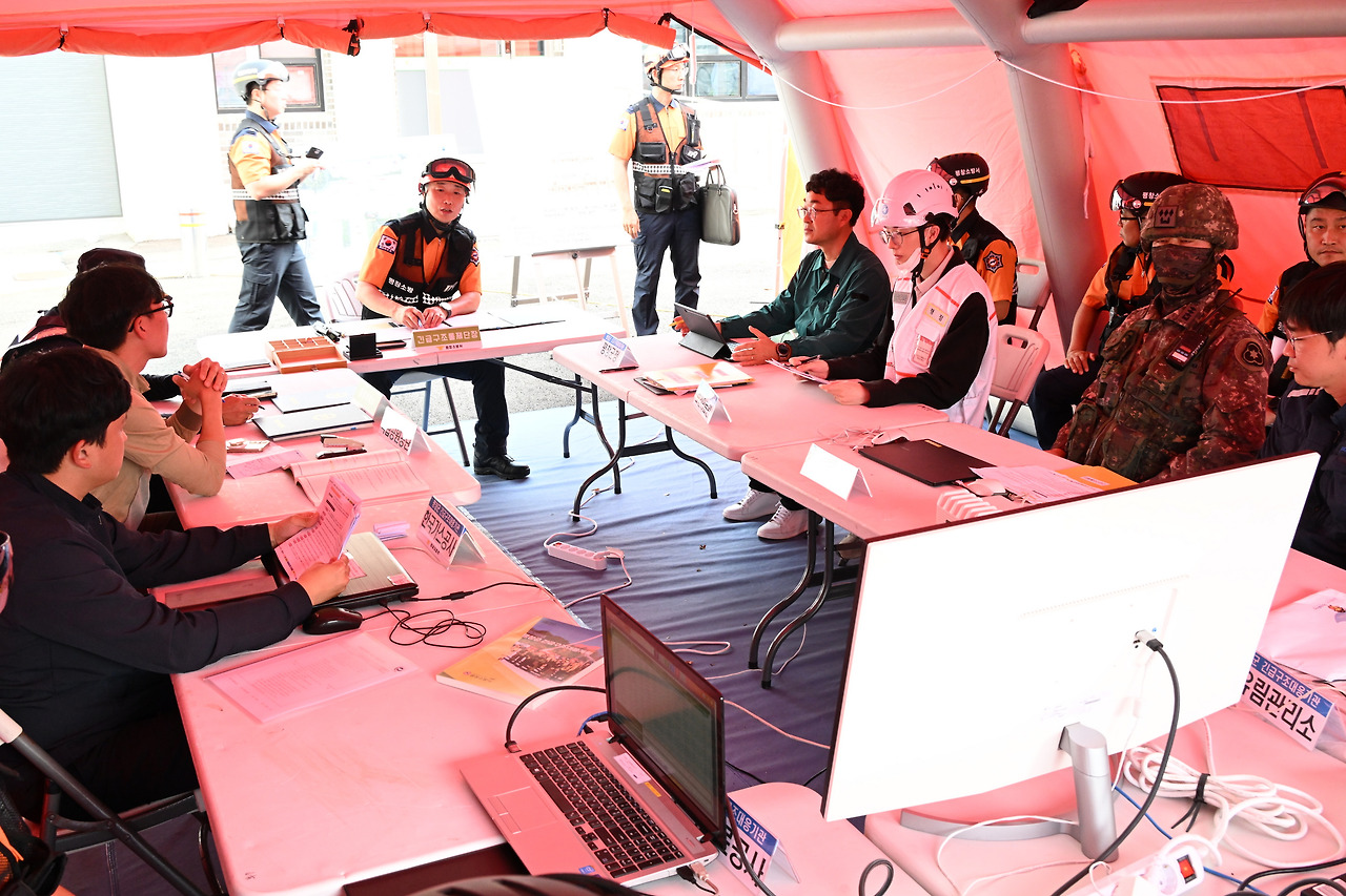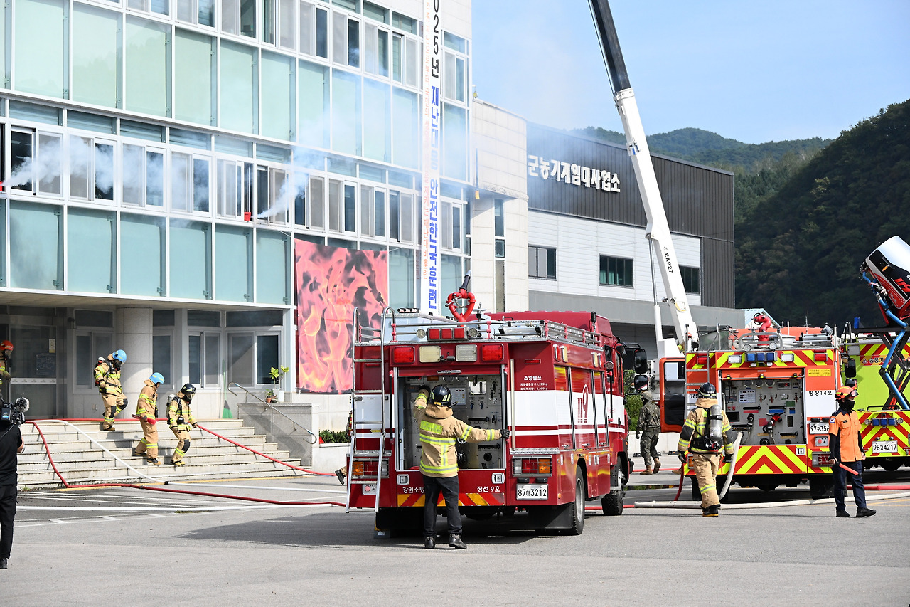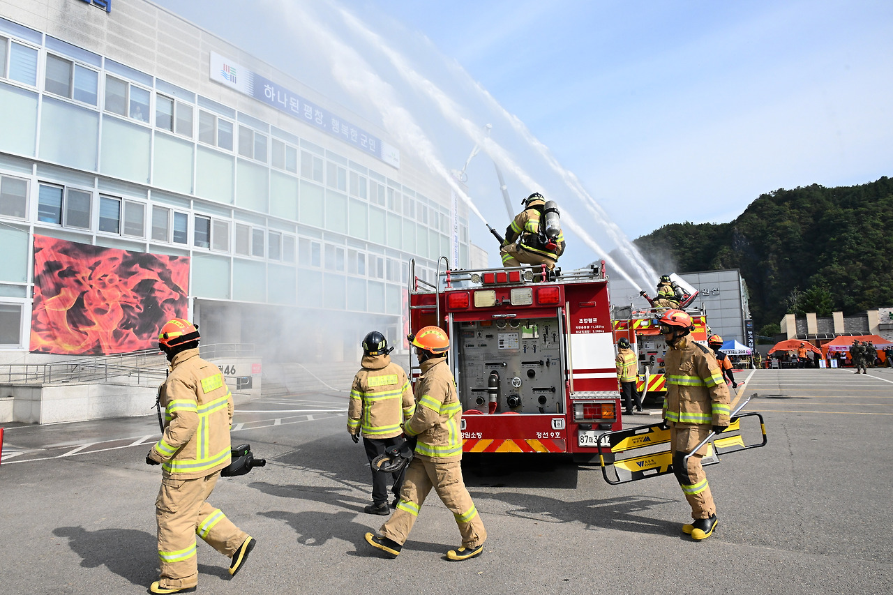 군청 재난안전상황실에서는 재난안전대책본부장인 심재국 평창군수가 주재해 실무부서와 유관기관별 협력·조치 방안에 대해 논의했으며, 현장훈련에서는 자위소방활동과 재난안전통신망(PS-LTE)을 통한 상황 보고·전파, 긴급구조통제단 가동, 통합지원본부 운영 등 재난대응 단계별 사고 수습 체계를 점검하는 데 중점을 뒀다.