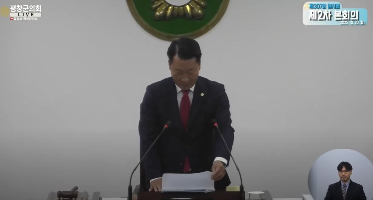 평창군의회, 제307회 임시회 제2차 본회의 마무리… 18건 조례·동의안 모두 원안 가결