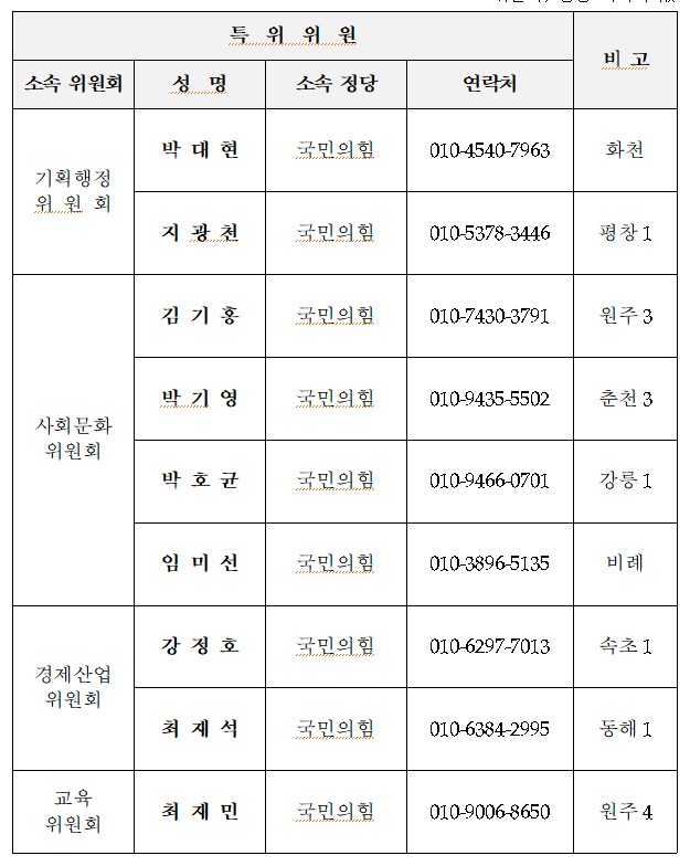 이날 회의에서는 위원장에 박기영 의원(국민의힘, 춘천 3), 부위원장에 임미선 의원(국민의힘, 비례)을 각각 선임하고 특위의 본격적인 활동을 알렸다.