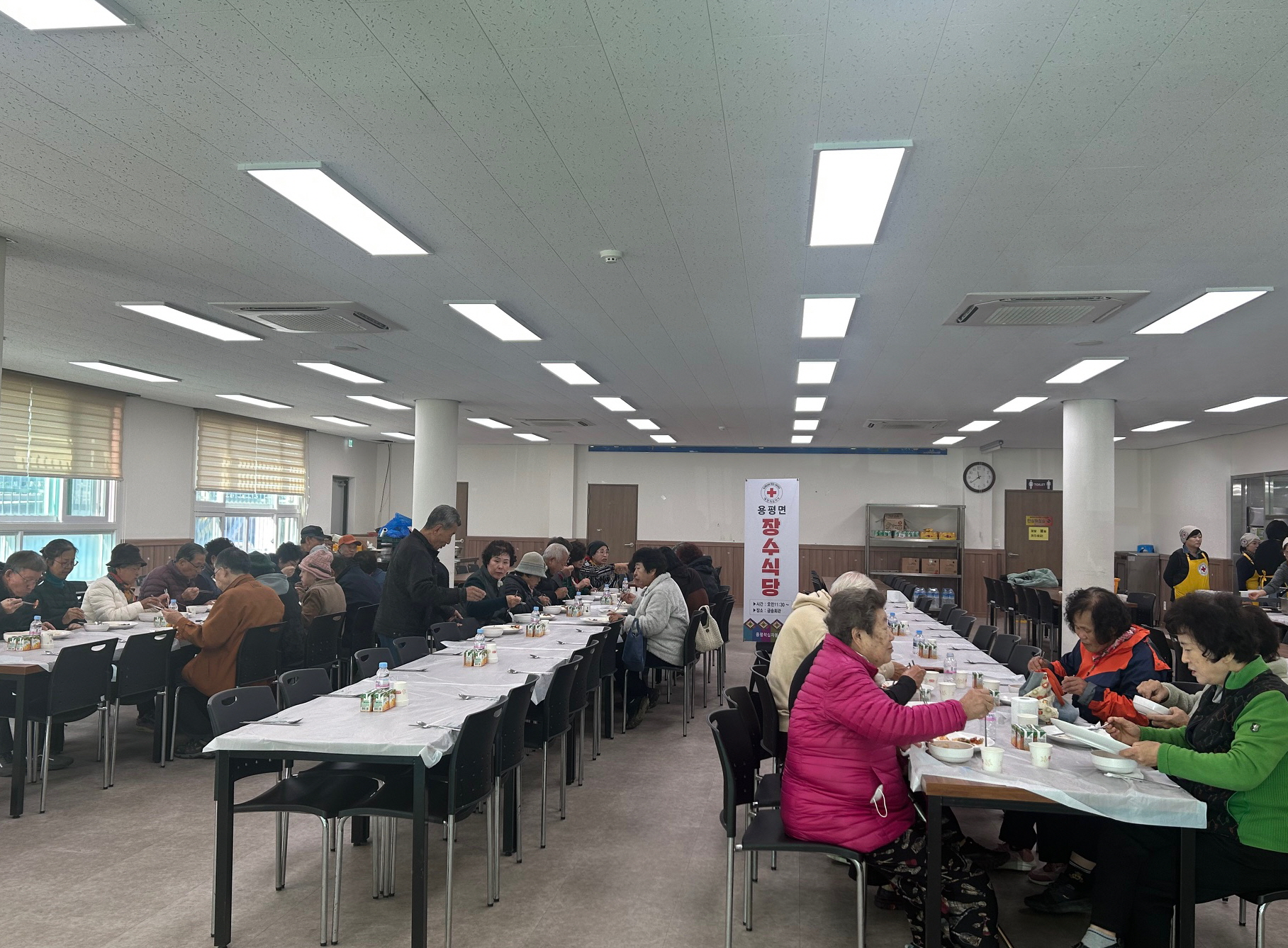 지난 10월 27일, 용평면적십자봉사회(회장 박정자) 회원 10여 명은 장평리 금송회관에서 지역 어르신 80여 명을 초청해 ‘장수식당’을 운영, 정성 어린 점심 식사를 대접했다.