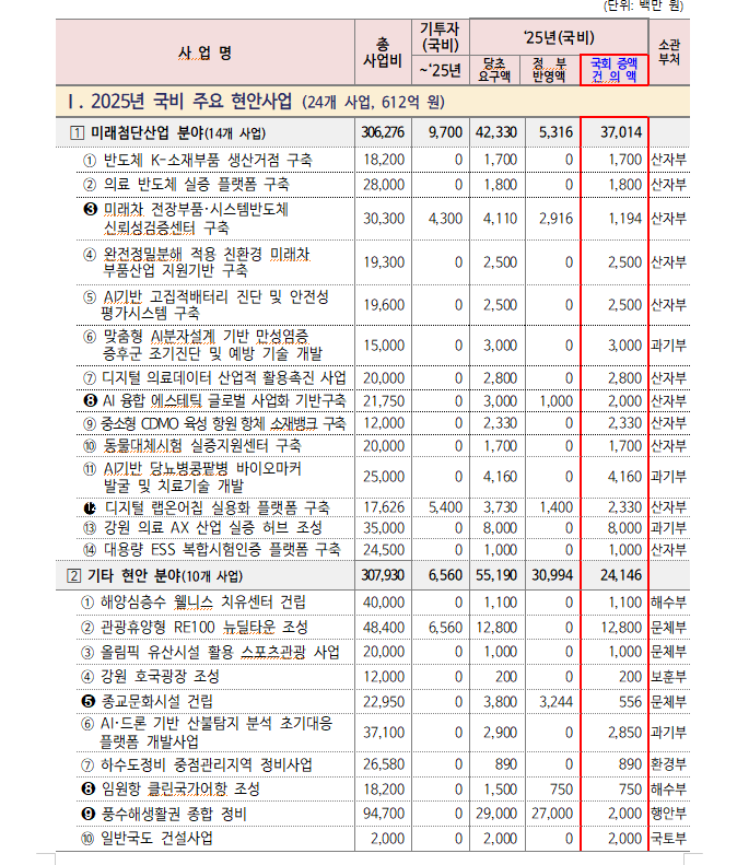 - 정부 예산안에 미반영된 24개 사업 612억 원 국비 추가확보 방안 등 논의