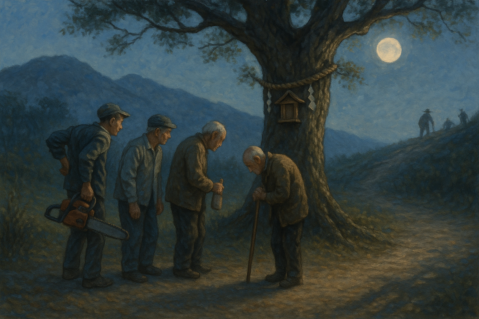 졸음 무거운 일꾼 전기톱을 세우고 기지개를 켜자