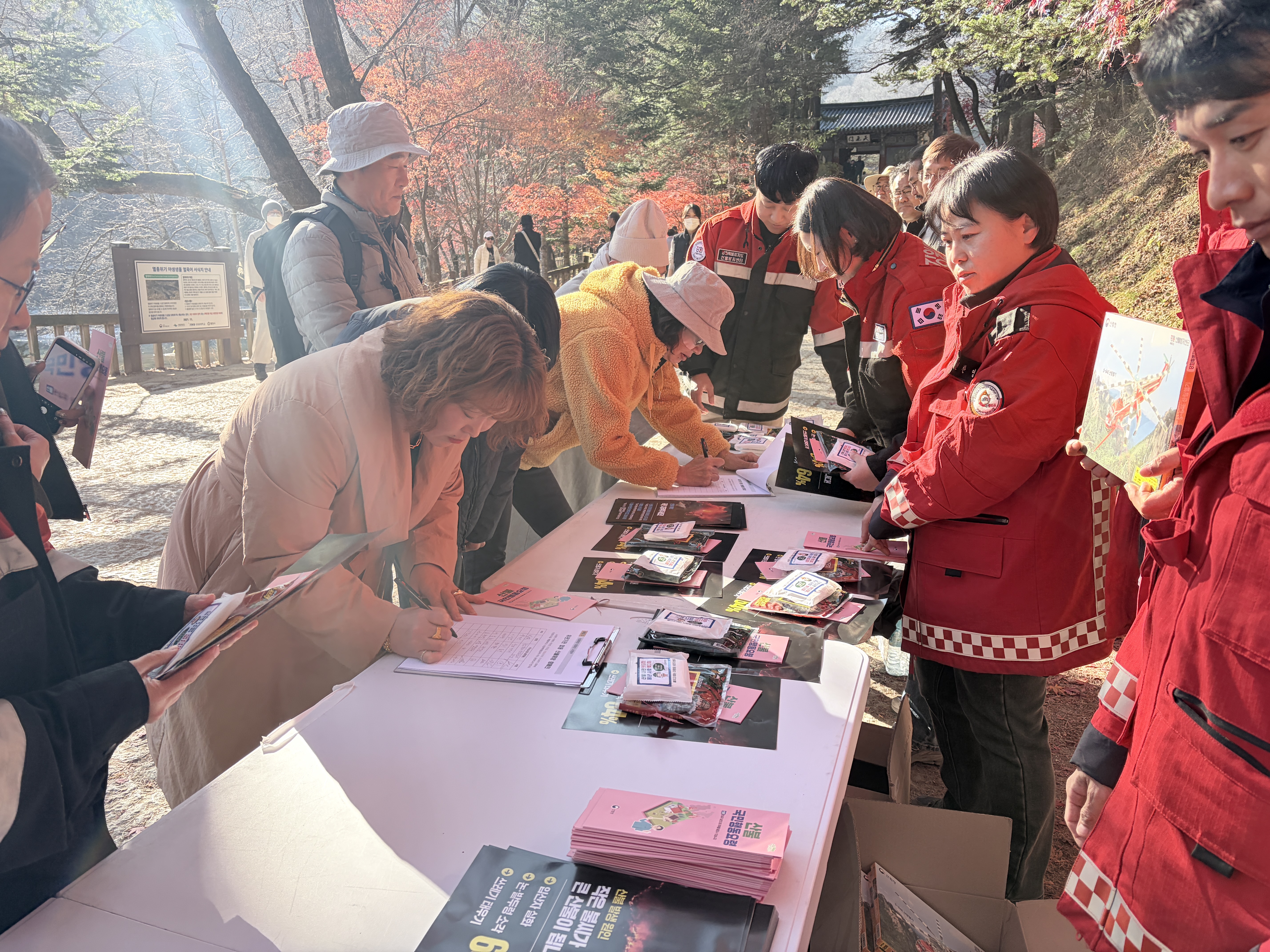 행사장을 찾은 방문객들에게 산불 예방 홍보물을 배부하고 직접 소통하며, 산불 발생의 위험성과 생활 속 예방 실천 방법을 안내하는 등 산불 예방 메시지를 효과적으로 전달하여 경각심을 높였다. 또한 등산로 주변 쓰레기 수거 등 산지 정화 활동을 병행하며 깨끗한 산림 환경 조성에도 앞장섰다.