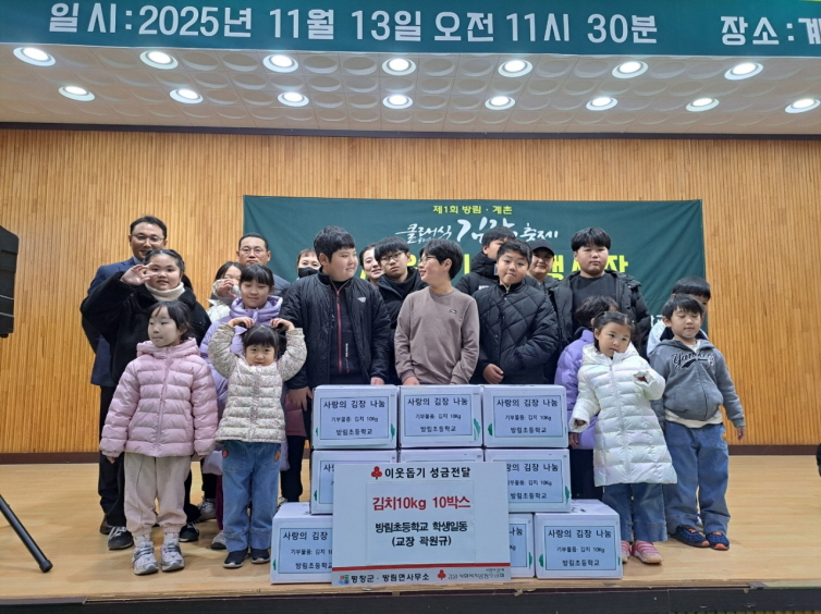 방림면 방림초등학교 학생들이 정성 어린 손길로 나눔을 실천했다. 방림초등학교(교장 곽원규) 학생 등 20여 명은 13일, ‘제1회 방림‧계촌클래식 김장 축제’에서 직접 담근 김장 김치 10박스를 방림면사무소에 기탁했다.