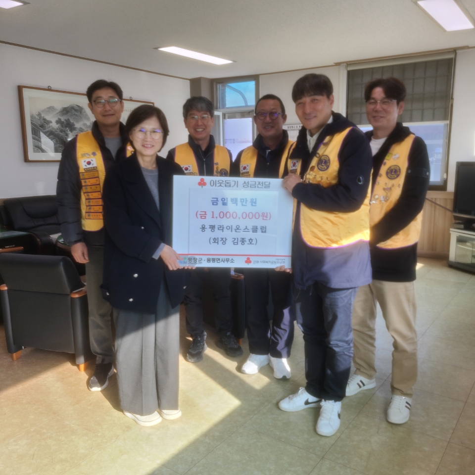 용평면 서윤숙면장은 “지역 주민을 위해 따뜻한 마음을 나눠주신 용평라이온스클럽 회원 여러분께 깊은 감사를 드린다”며 “기탁금은 도움이 꼭 필요한 가정에 소중히 전달하겠다”고 전했다.