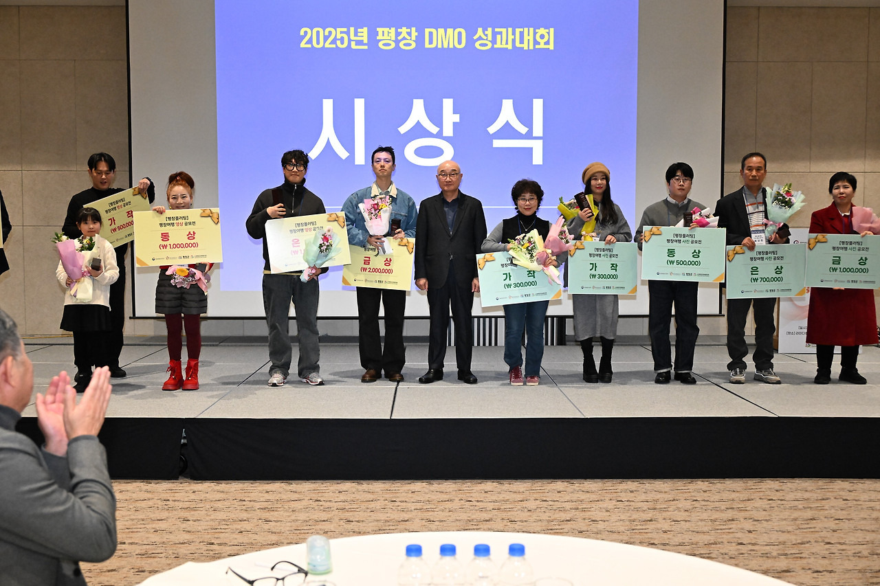 2부 행사에서는 ▲평창 로컬거버넌스 협의체 운영 ▲체크인평창(평창스테이·평창구석구석) ▲어게인평창(관광아카데미·평창플러팅) 등 2025년 주요 사업 성과와 함께, 평창강(평창-미탄)·드림(방림-대화)·메밀꽃(봉평-용평)·오대산(진부-대관령) 등 권역별 작은 DMO의 성과를 공유했다. 또한 우수 사업체 시상과 평창플러팅 사진·영상 공모전 수상작 발표도 진행됐다.