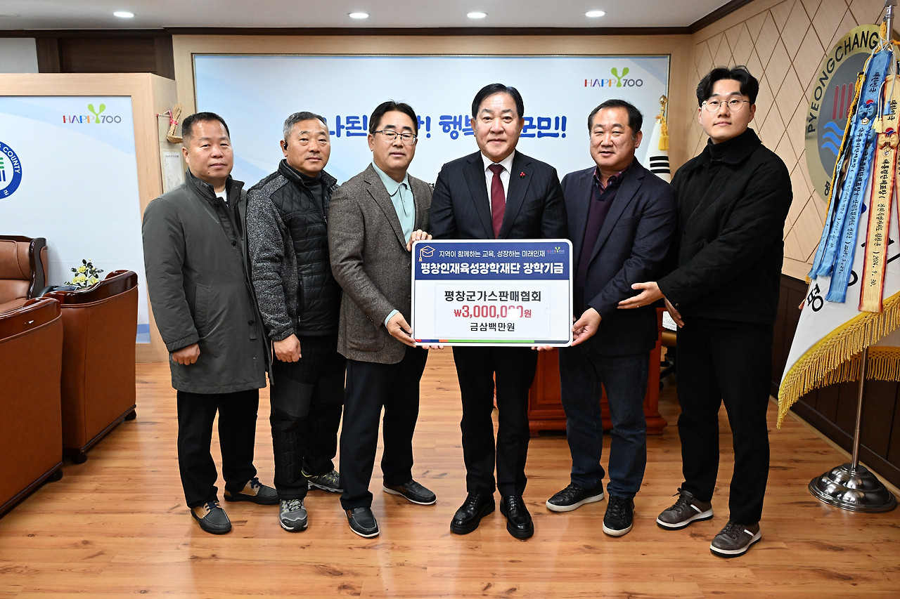 평창군가스판매협회(회장 신복근)가 16일 평창군청을 방문하여 평창인재육성장학재단에 장학금 300만 원을 기탁했다.