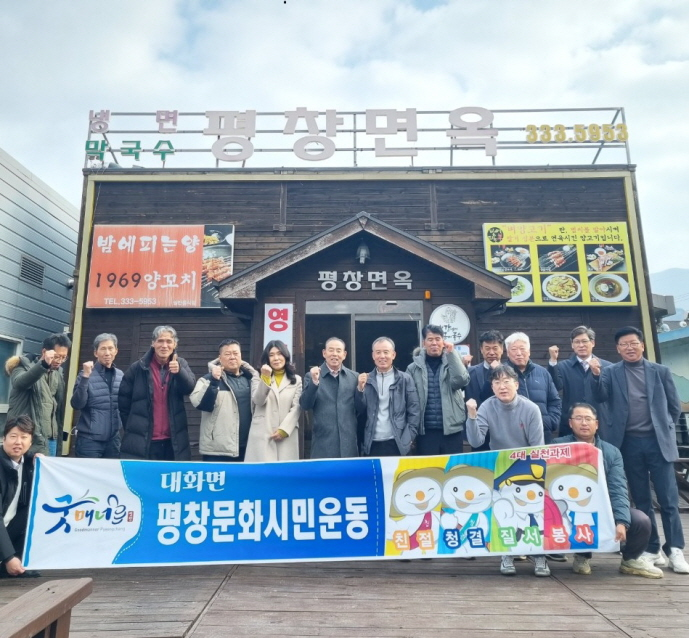대화면 관내 기관·사회단체 연합은 12월 15일, 면사무소와 관내 식당 일원에서 굿매너 평창 문화시민운동의 일환으로 친절 캠페인을 실시했다.