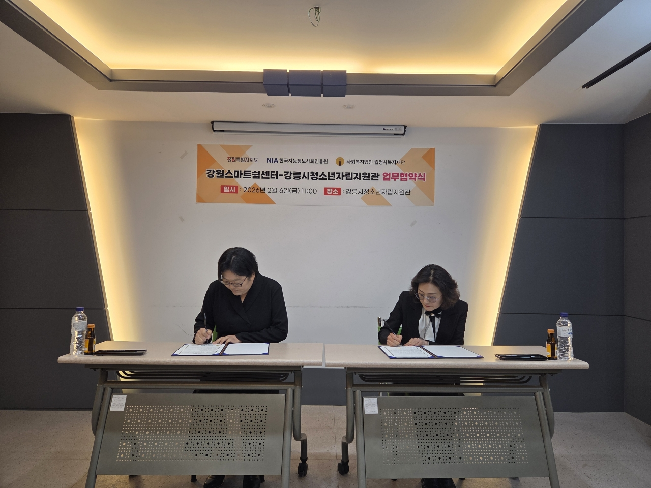 강원특별자치도 강원스마트쉼센터는 지난 2월 6일 오전 11시 강릉시청소년자립지원관과 지역사회 위기 청소년의 예방과 건강한 성장 지원을 위한 업무협약을 체결했다고 밝혔다.
