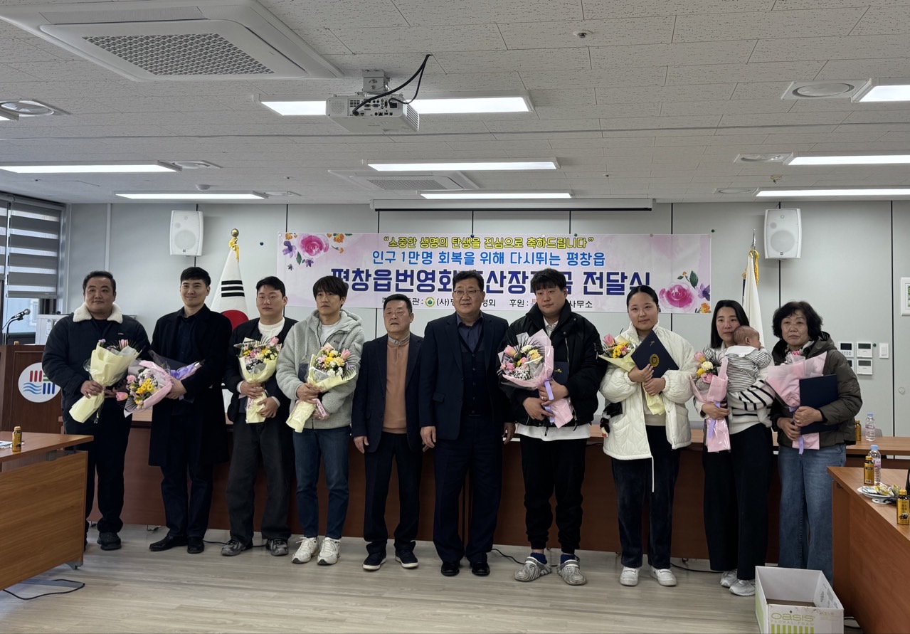 평창읍 번영회, 인구 늘리기 정책 출산장려금 전달식