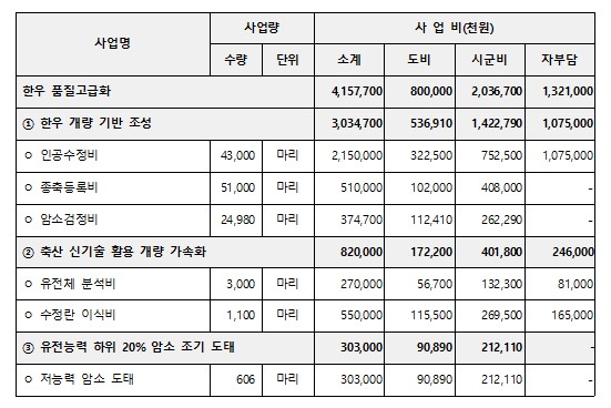 ② 개량 기반 조성, 신기술 활용 유전능력 개량 등 6개 분야 42억 원 투입