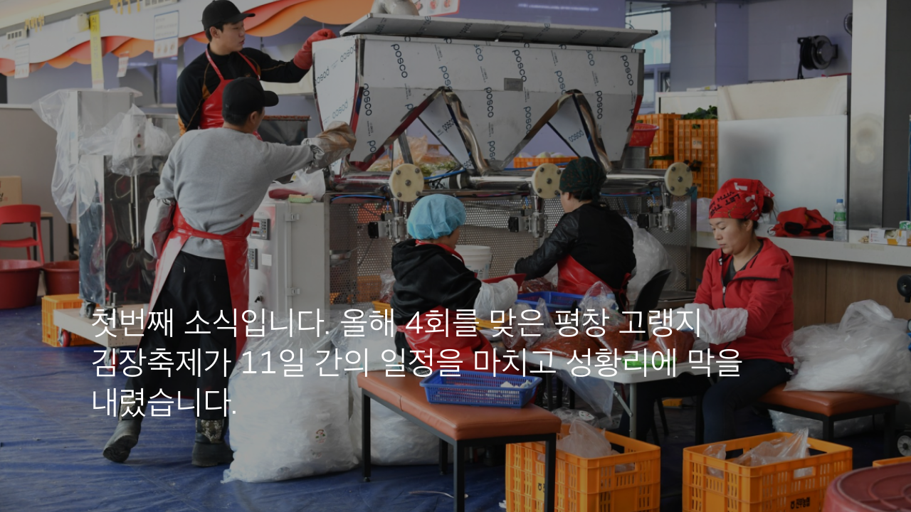 첫번째 소식입니다. 올해 4회를 맞은 평창 고랭지 김장축제가 11일 간의 일정을 마치고 성황리에 막을 내렸습니다.