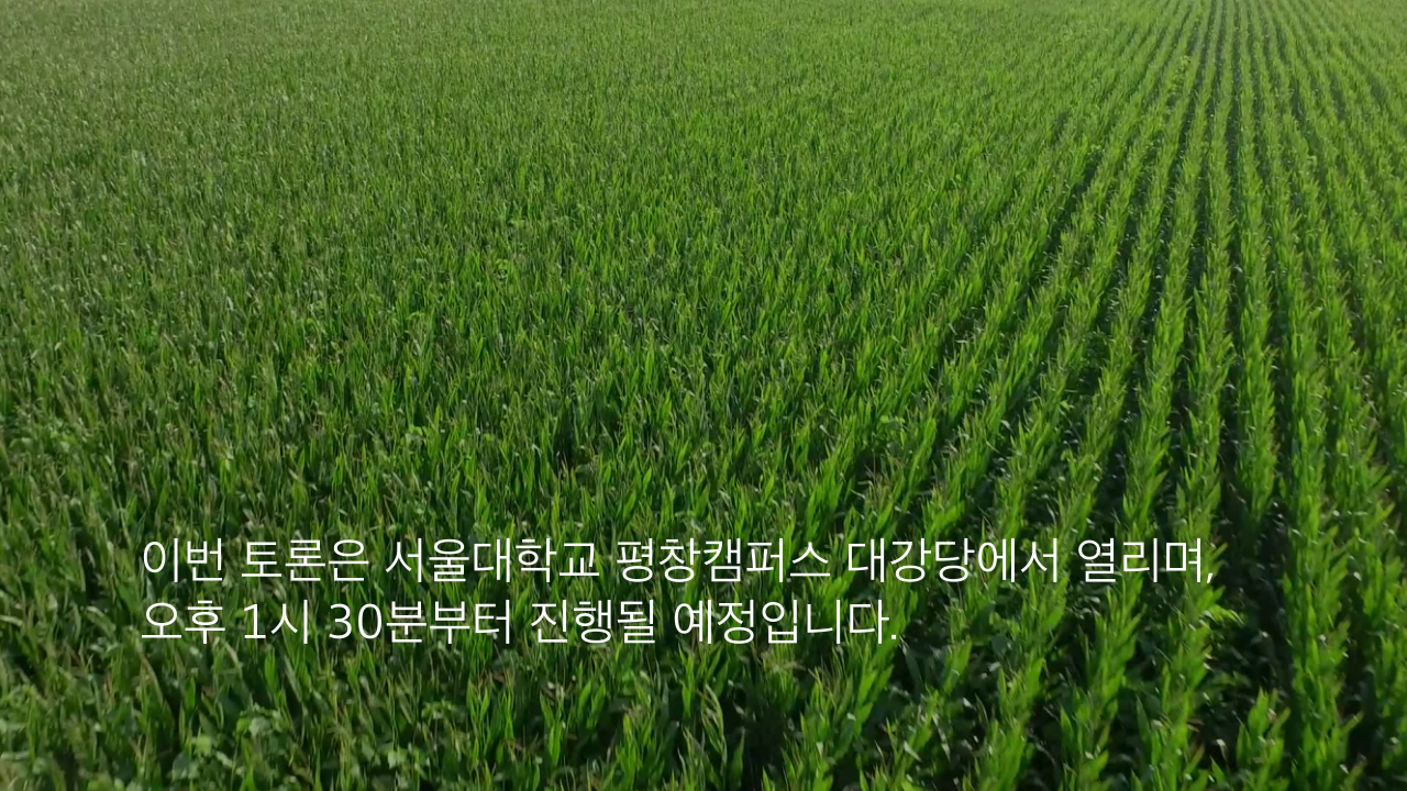 이번 토론은 서울대학교 평창캠퍼스 대강당에서 열리며, 오후 1시 30분부터 진행될 예정입니다.