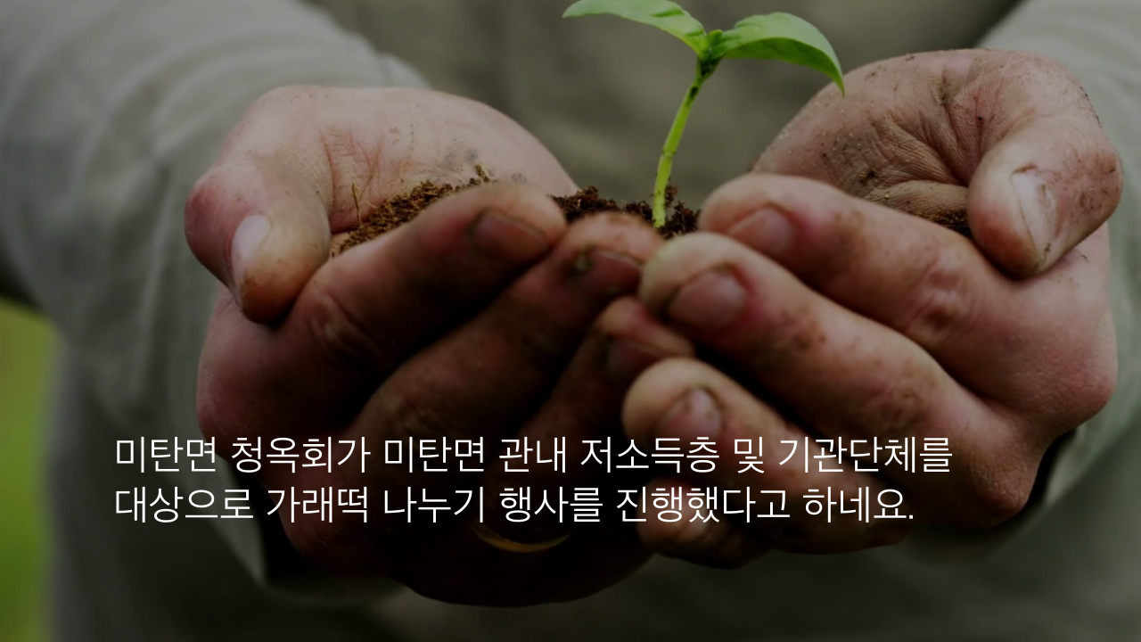 미탄면 청옥회가 미탄면 관내 저소득층 및 기관단체를 대상으로 가래떡 나누기 행사를 진행했다고 하네요.