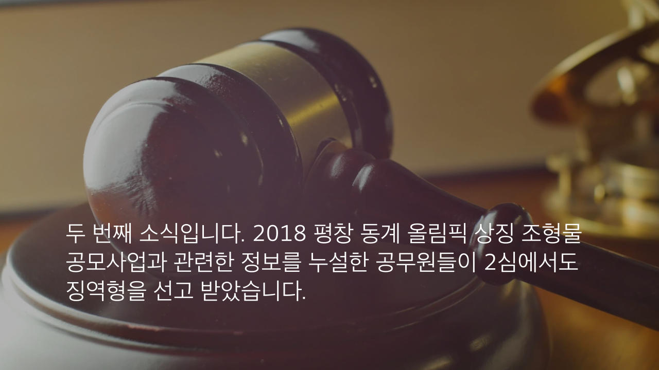 두 번째 소식입니다. 2018 평창 동계 올림픽 상징 조형물 공모사업과 관련한 정보를 누설한 공무원들이 2심에서도 징역형을 선고 받았습니다.