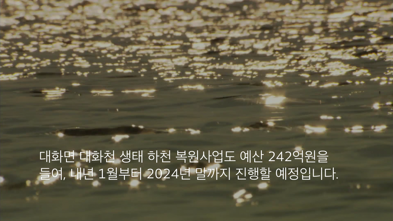대화면 대화천 생태 하천 복원사업도 예산 242억원을 들여, 내년 1월부터 2024년 말까지 진행할 예정입니다.