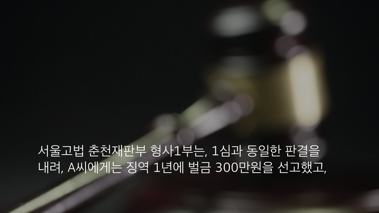서울고법 춘천재판부 형사1부는, 1심과 동일한 판결을 내려, A씨에게는 징역 1년에 벌금 300만원을 선고했고,