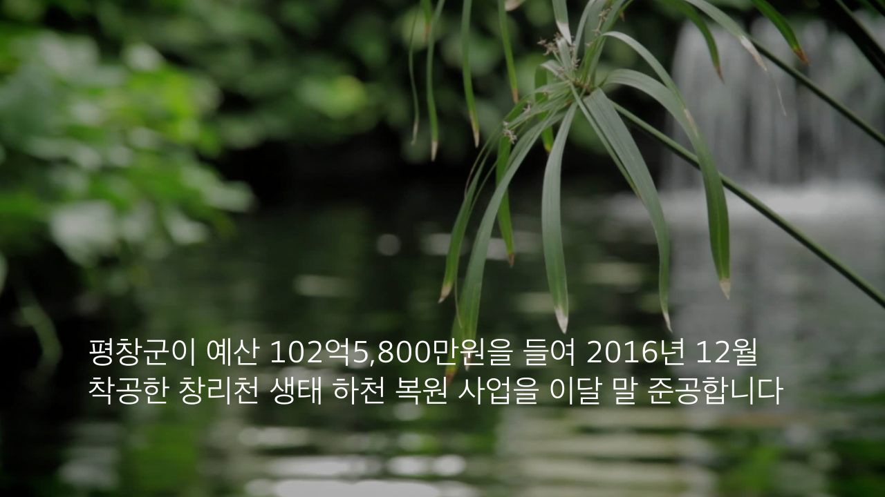 평창군이 예산 102억5,800만원을 들여 2016년 12월 착공한 창리천 생태 하천 복원 사업을 이달 말 준공합니다