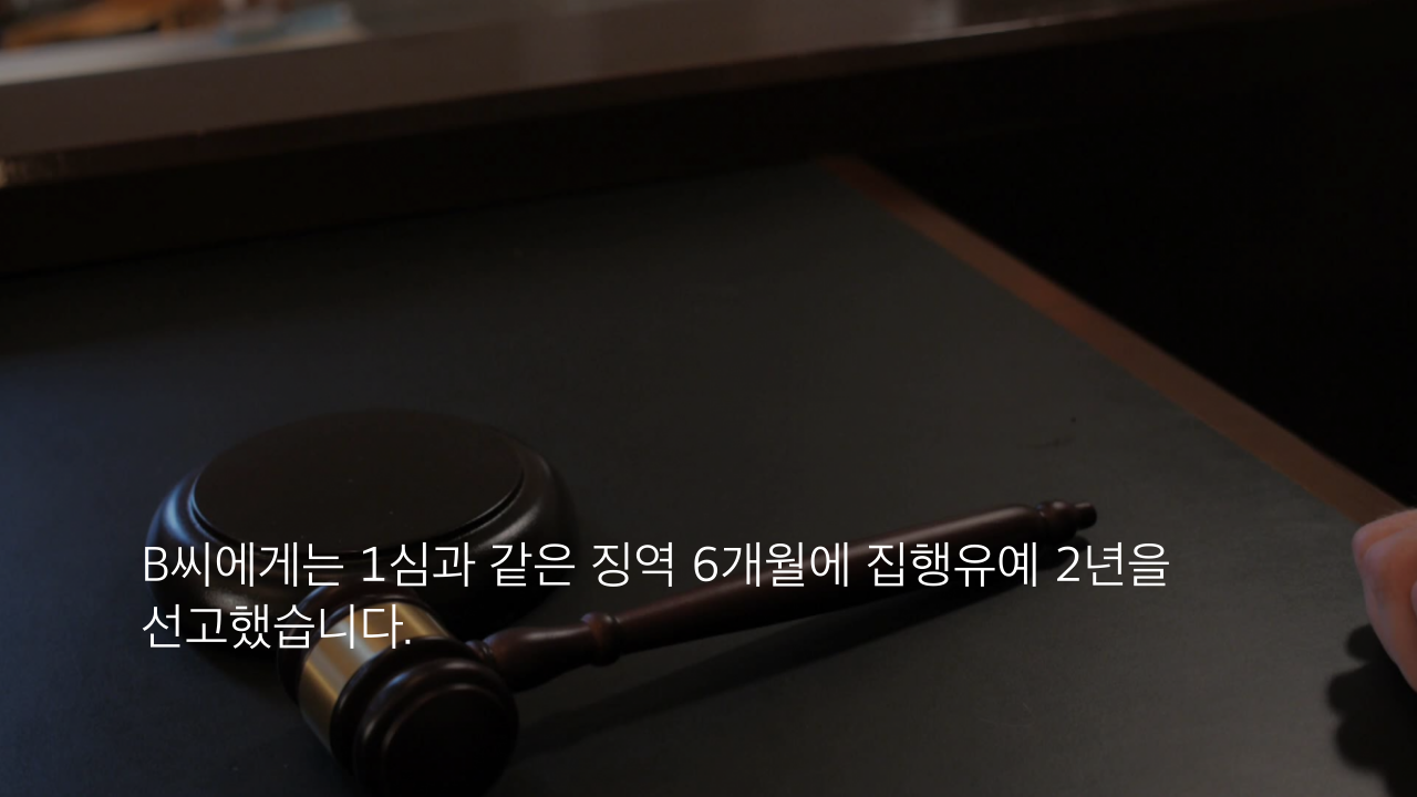 B씨에게는 1심과 같은 징역 6개월에 집행유예 2년을 선고했습니다.