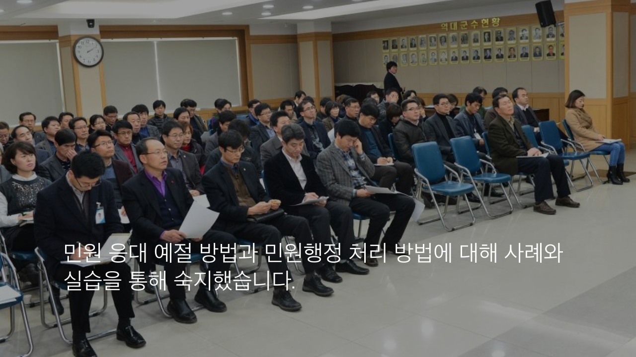 이번 교육은 민원인 중심, 친절한 마음으로 행정 서비스를 제공하기 위해 마련 됐습니다.