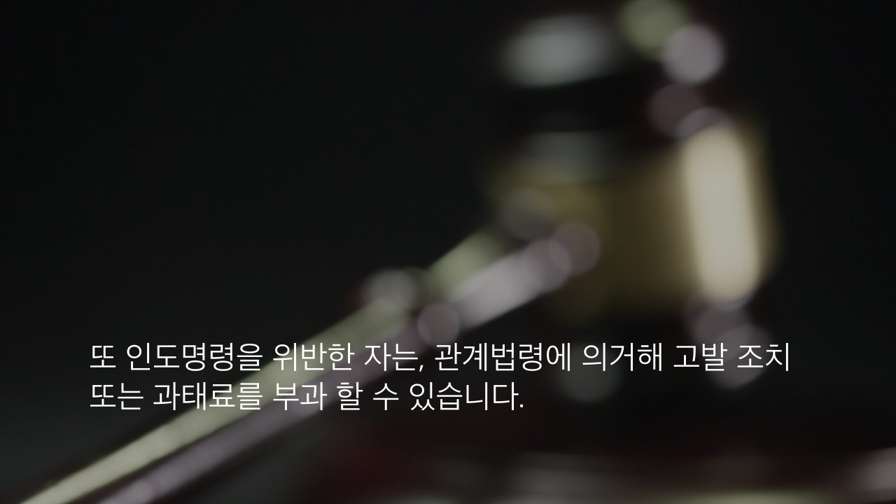 또 인도명령을 위반한 자는, 관계법령에 의거해 고발 조치 또는 과태료를 부과 할 수 있습니다.