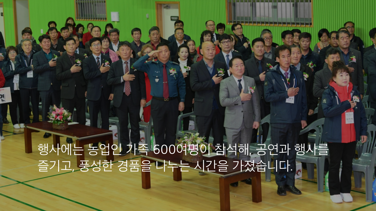 행사에는 농업인 가족 600여명이 참석해, 공연과 행사를 즐기고, 풍성한 경품을 나누는 시간을 가졌습니다.