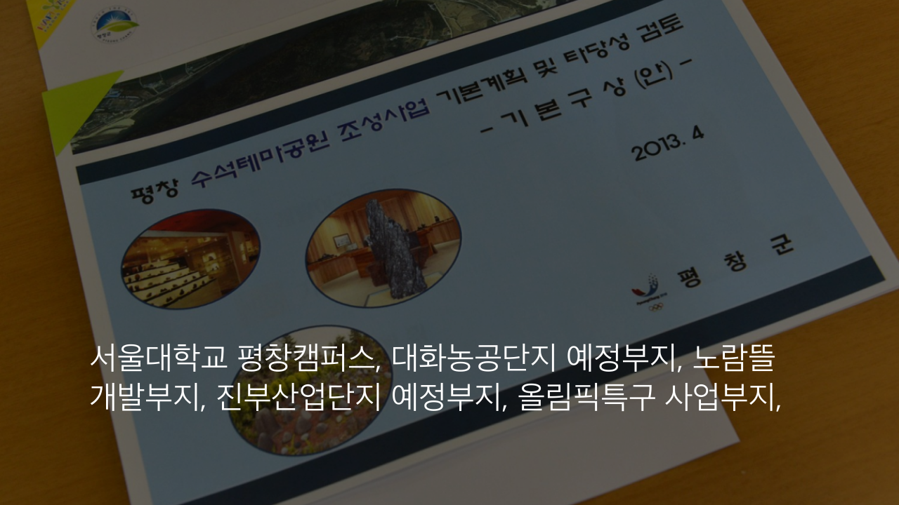 서울대학교 평창캠퍼스, 대화농공단지 예정부지, 노람뜰 개발부지, 진부산업단지 예정부지, 올림픽특구 사업부지,