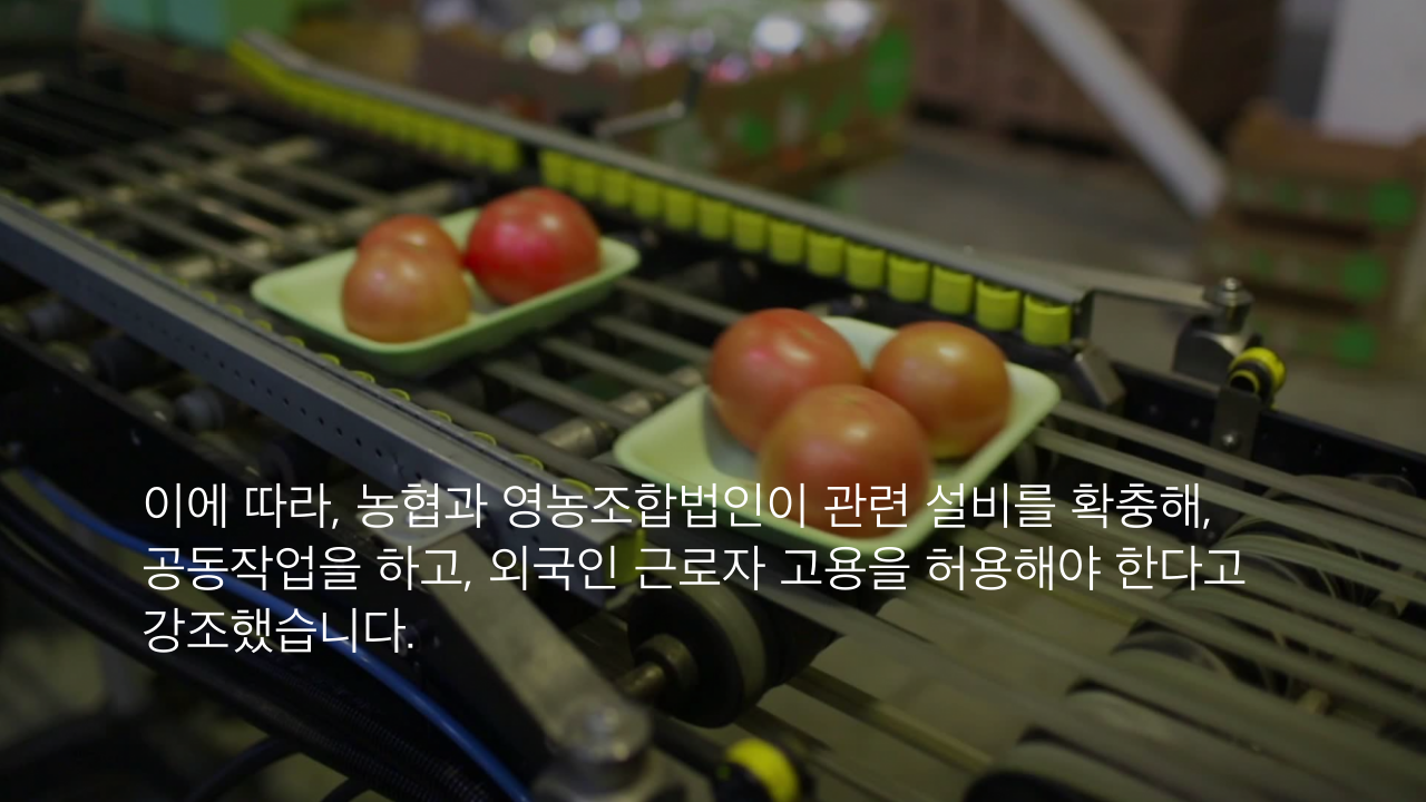 이에 따라, 농협과 영농조합법인이 관련 설비를 확충해, 공동작업을 하고, 외국인 근로자 고용을 허용해야 한다고 강조했습니다.