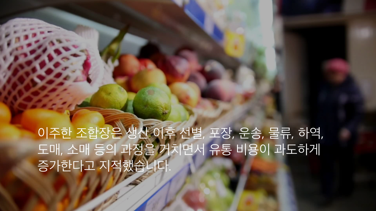 이주한 조합장은 생산 이후 선별, 포장, 운송, 물류, 하역, 도매, 소매 등의 과정을 거치면서 유통 비용이 과도하게 증가한다고 지적했습니다.