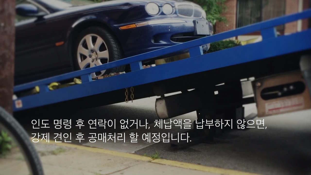 인도 명령 후 연락이 없거나, 체납액을 납부하지 않으면, 강제 견인 후 공매처리 할 예정입니다.