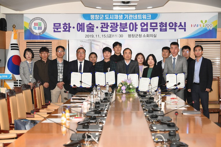 평창군은 도시재생의 활성화와 원활한 추진을 위하여 (사)배리어프리영화위원회ㆍ감자꽃스튜디오ㆍ평창군 문화예술재단과 함께 11월 15일 오전 11시 30분 평창군청 소회의실에서 최영훈 경제건설국장 및 관계자 6명이 참여한 가운데 업무협약을 체결했다고 밝혔다.