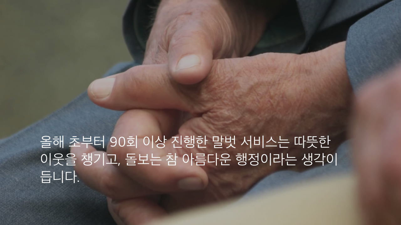 올해 초부터 90회 이상 진행한 말벗 서비스는 따뜻한 이웃을 챙기고, 돌보는 참 아름다운 행정이라는 생각이 듭니다.