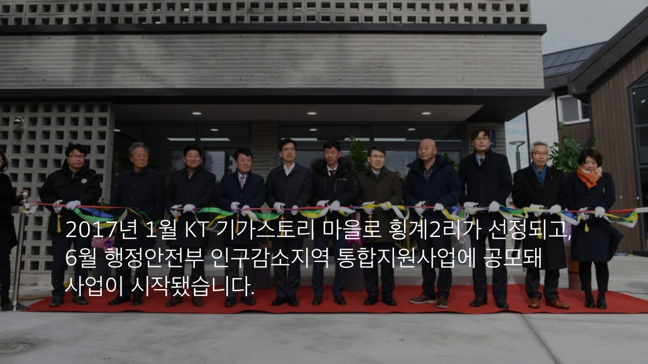 2017년 1월 KT 기가스토리 마을로 횡계2리가 선정되고, 6월 행정안전부 인구감소지역 통합지원사업에 공모돼 사업이 시작됐습니다.