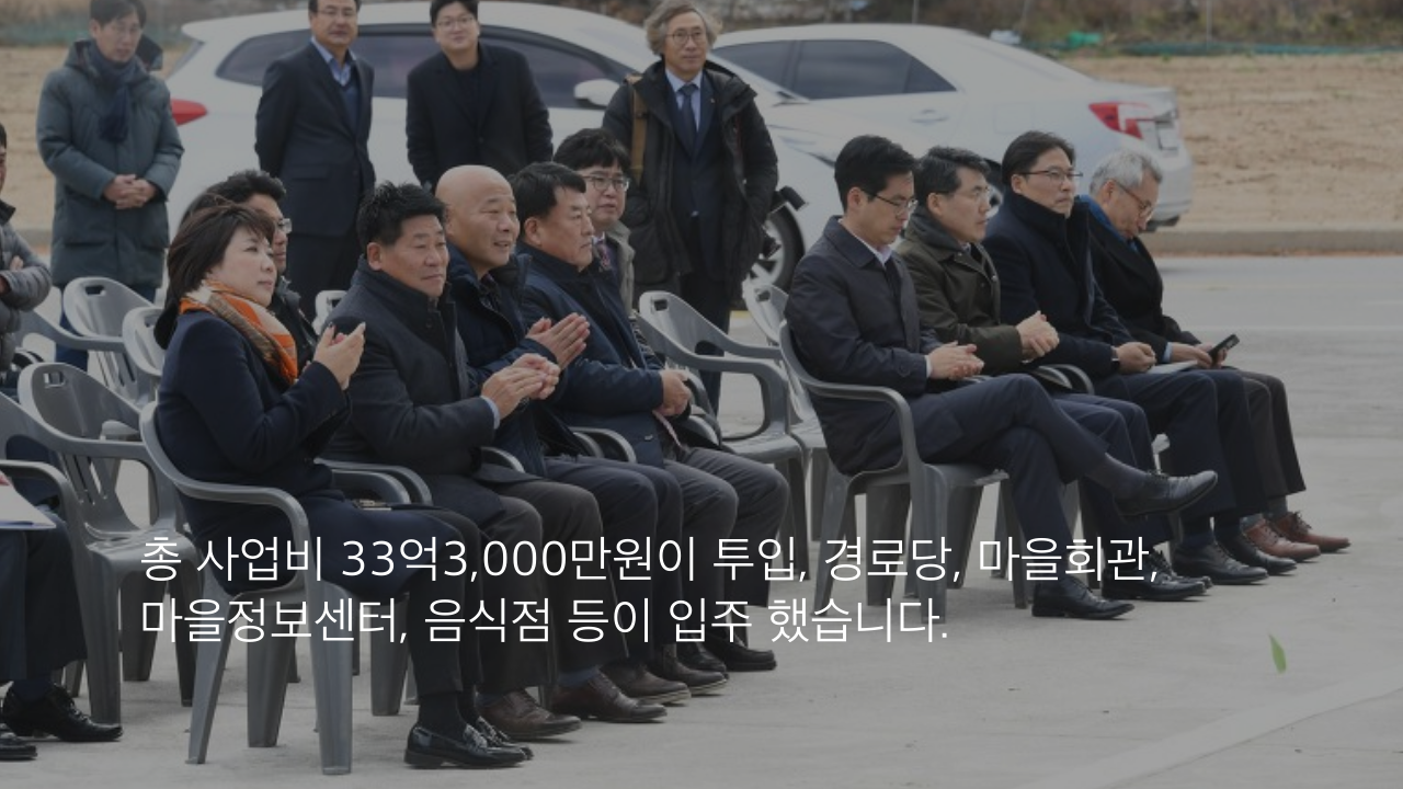 총 사업비 33억3,000만원이 투입, 경로당, 마을회관, 마을정보센터, 음식점 등이 입주 했습니다.