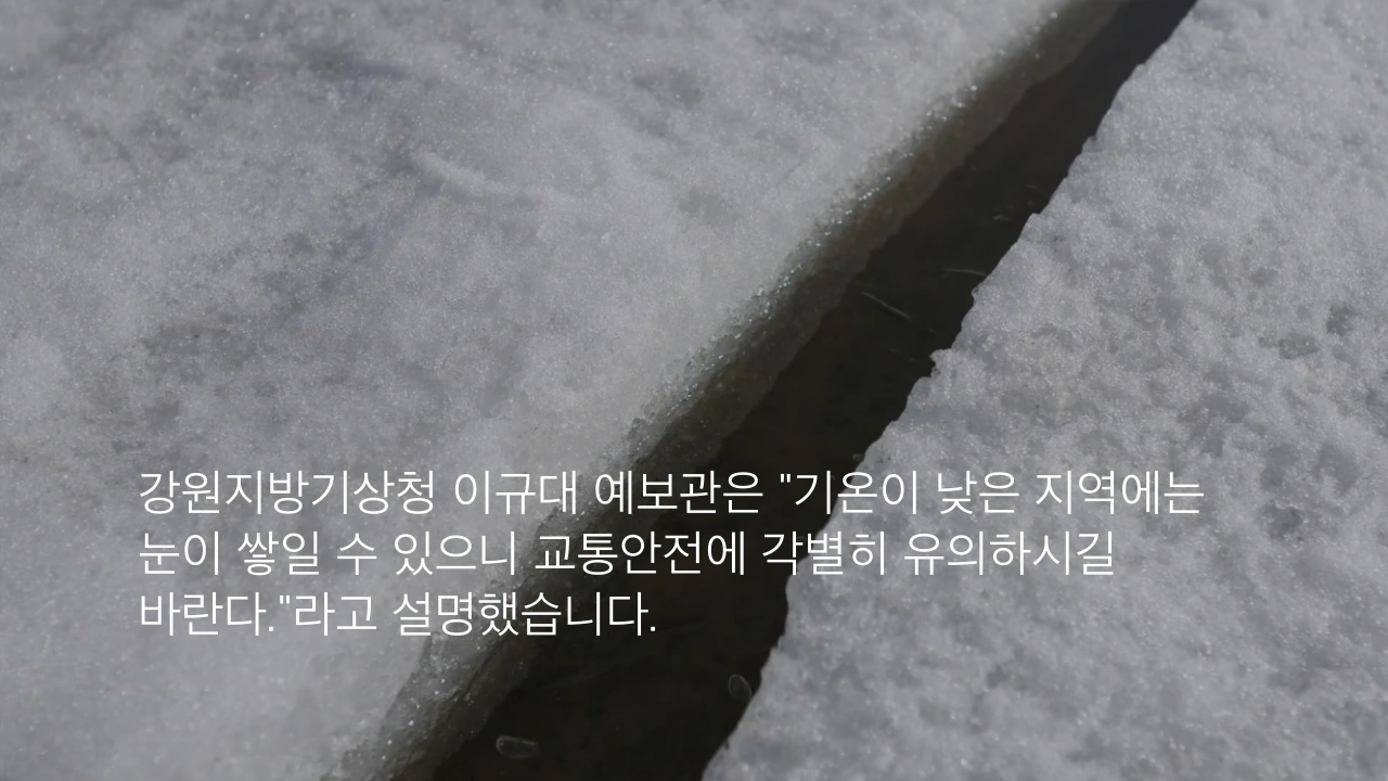 강원지방기상청 이규대 예보관은 "기온이 낮은 지역에는 눈이 쌓일 수 있으니 교통안전에 각별히 유의하시길 바란다."라고 설명했습니다.