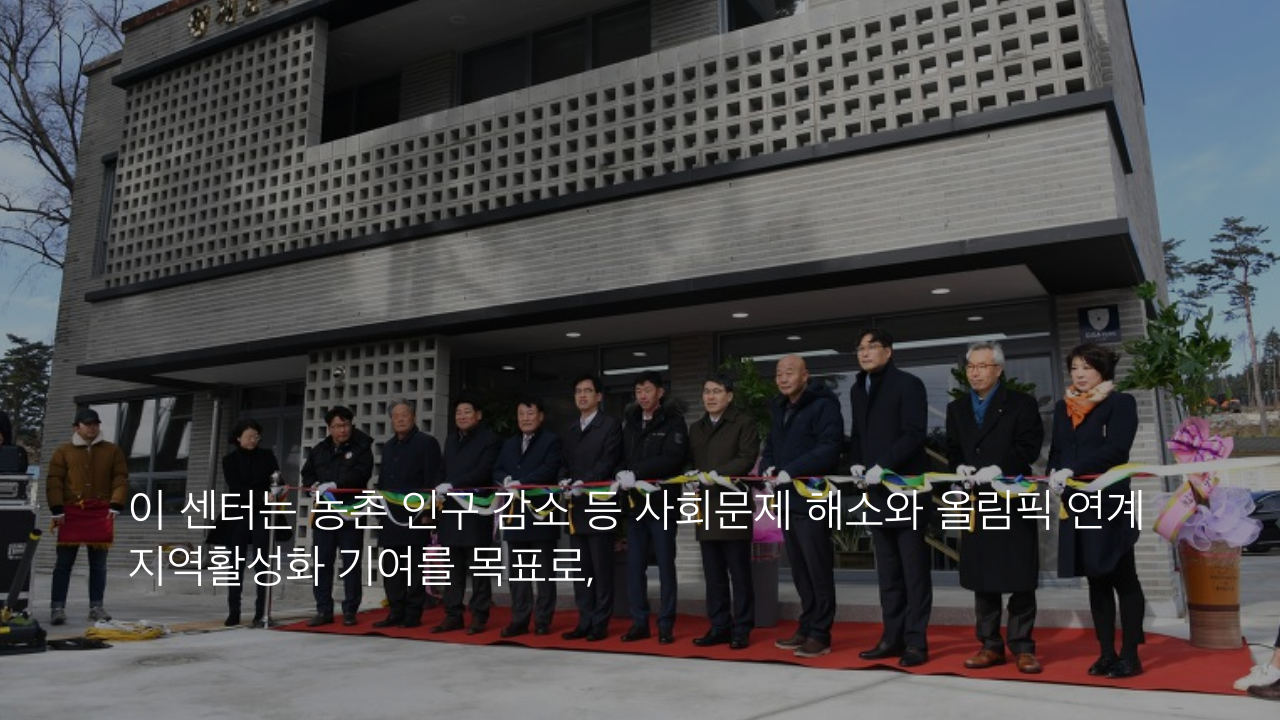 이 센터는 농촌 인구 감소 등 사회문제 해소와 올림픽 연계 지역활성화 기여를 목표로,