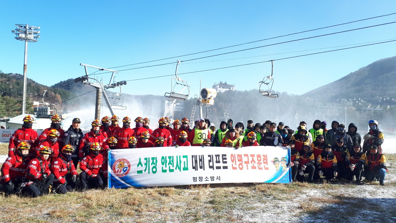 평창소방서(서장 김정희)는 19일 용평리조트 스키장에서 구조대원의 인명구조 능력 향상을 위한 스키장 리프트 고립사고 대비 합동 인명구조훈련을 실시하였다고 밝혔다.
