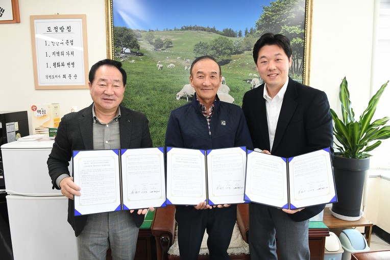 지난 22일 평창군농업기술센터에서 한왕기 평창군수와 미국 LA 소재 강원트레이딩 안봉길 대표 외 관계자 10명이 참석한 가운데 평창군 특산품의 미국동부시장 수출확대를 위한 MOU를 체결하였다.