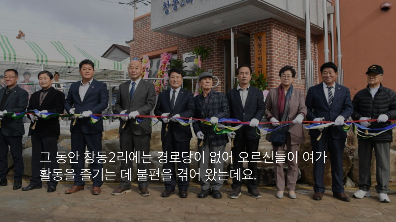 그 동안 창동2리에는 경로당이 없어 오르신들이 여가 활동을 즐기는 데 불편을 겪어 왔는데요.