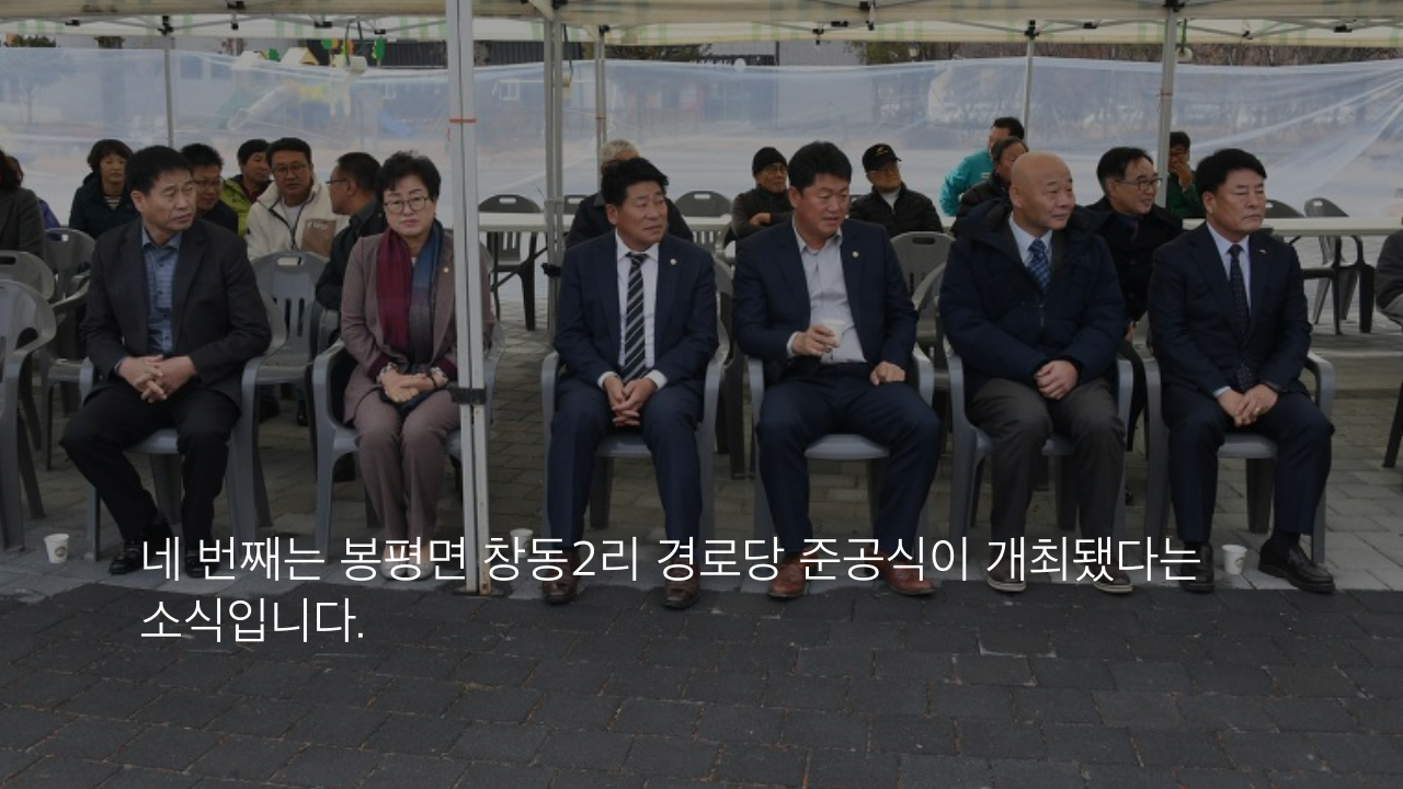 네 번째는 봉평면 창동2리 경로당 준공식이 개최됐다는 소식입니다.