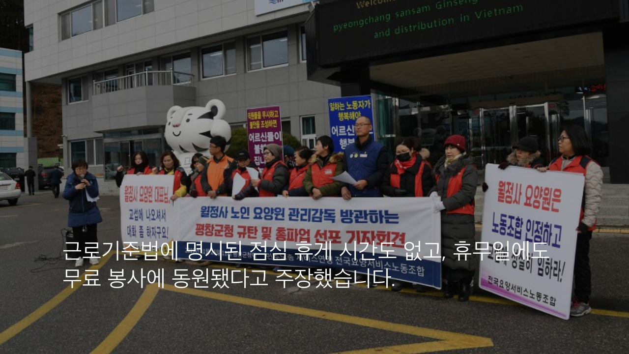 노조 측은 평창군청에, 요양원에 대한 제대로 된 실태조사를 요구하고, 월정사 요양원은 성실하게 교섭에 나설 것을 촉구했습니다.
