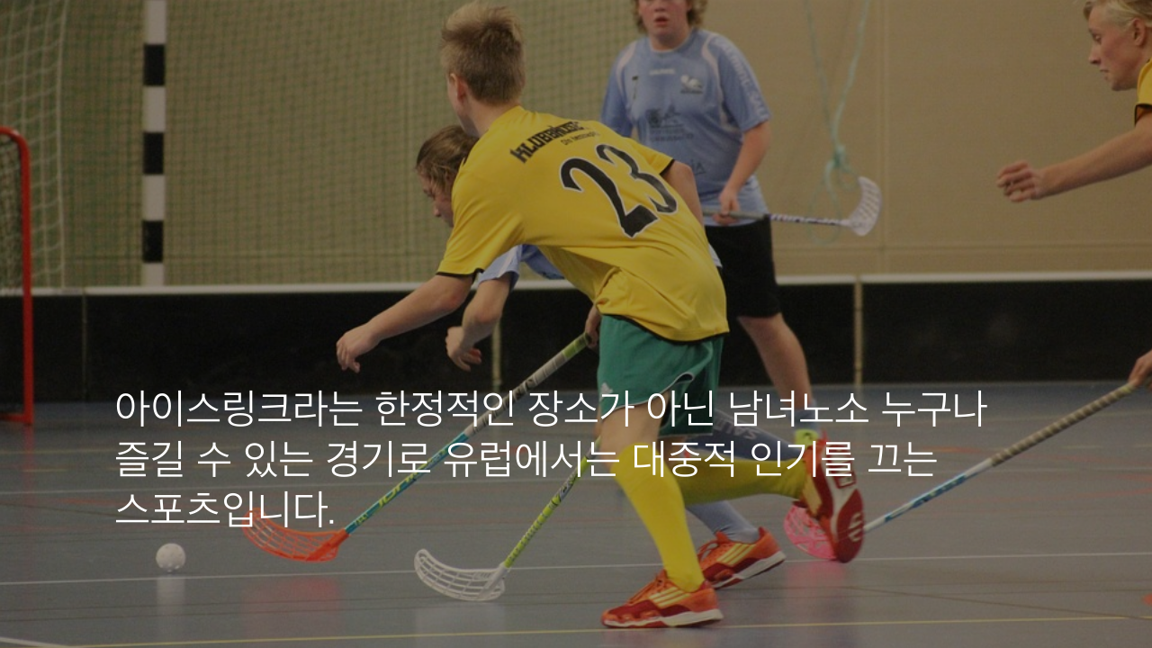 아이스링크라는 한정적인 장소가 아닌 남녀노소 누구나 즐길 수 있는 경기로 유럽에서는 대중적 인기를 끄는 스포츠입니다.