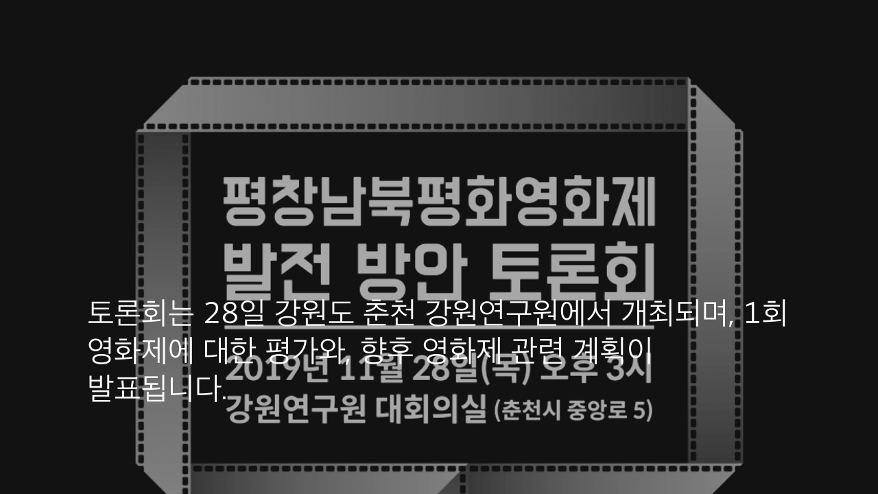 세 번째는 올해 1회를 끝낸, 평창남북평화영화제 발전 방안 토론회 개최 소식입니다.