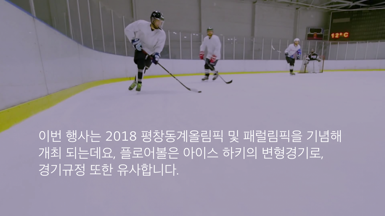이번 행사는 2018 평창동계올림픽 및 패럴림픽을 기념해 개최 되는데요, 플로어볼은 아이스 하키의 변형경기로, 경기규정 또한 유사합니다.