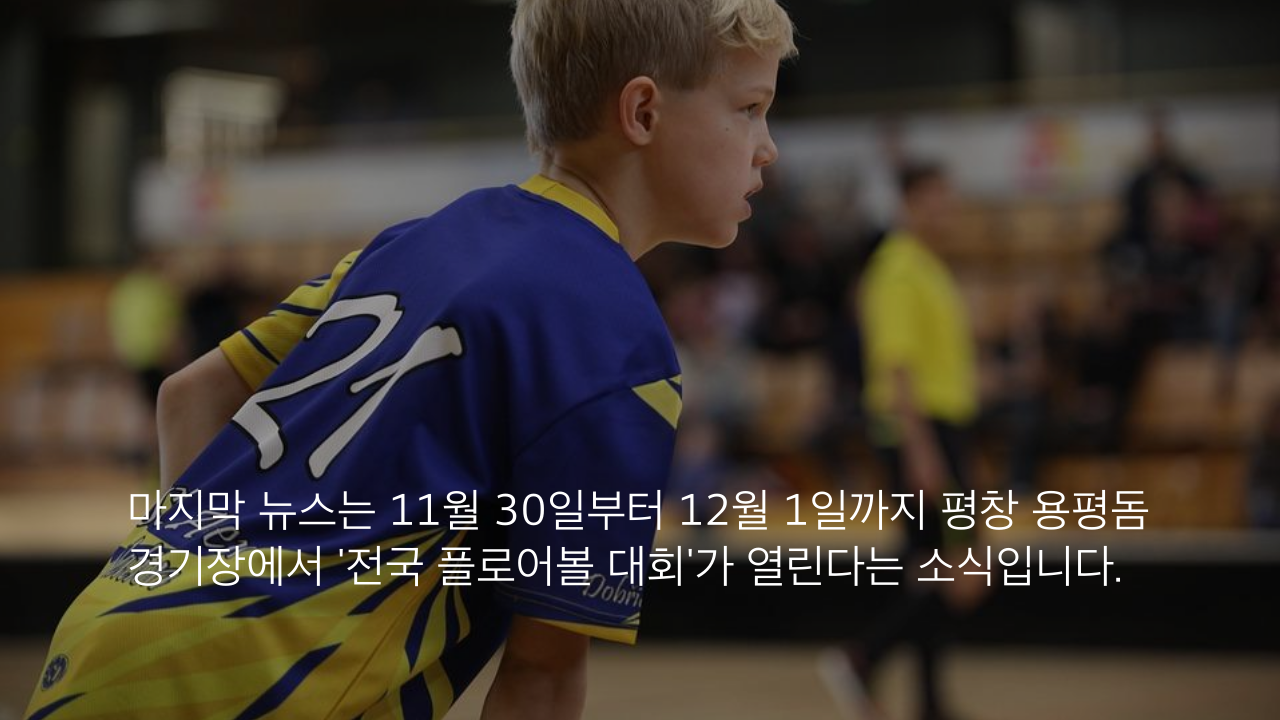 마지막 뉴스는 11월 30일부터 12월 1일까지 평창 용평돔 경기장에서 '전국 플로어볼 대회'가 열린다는 소식입니다.
