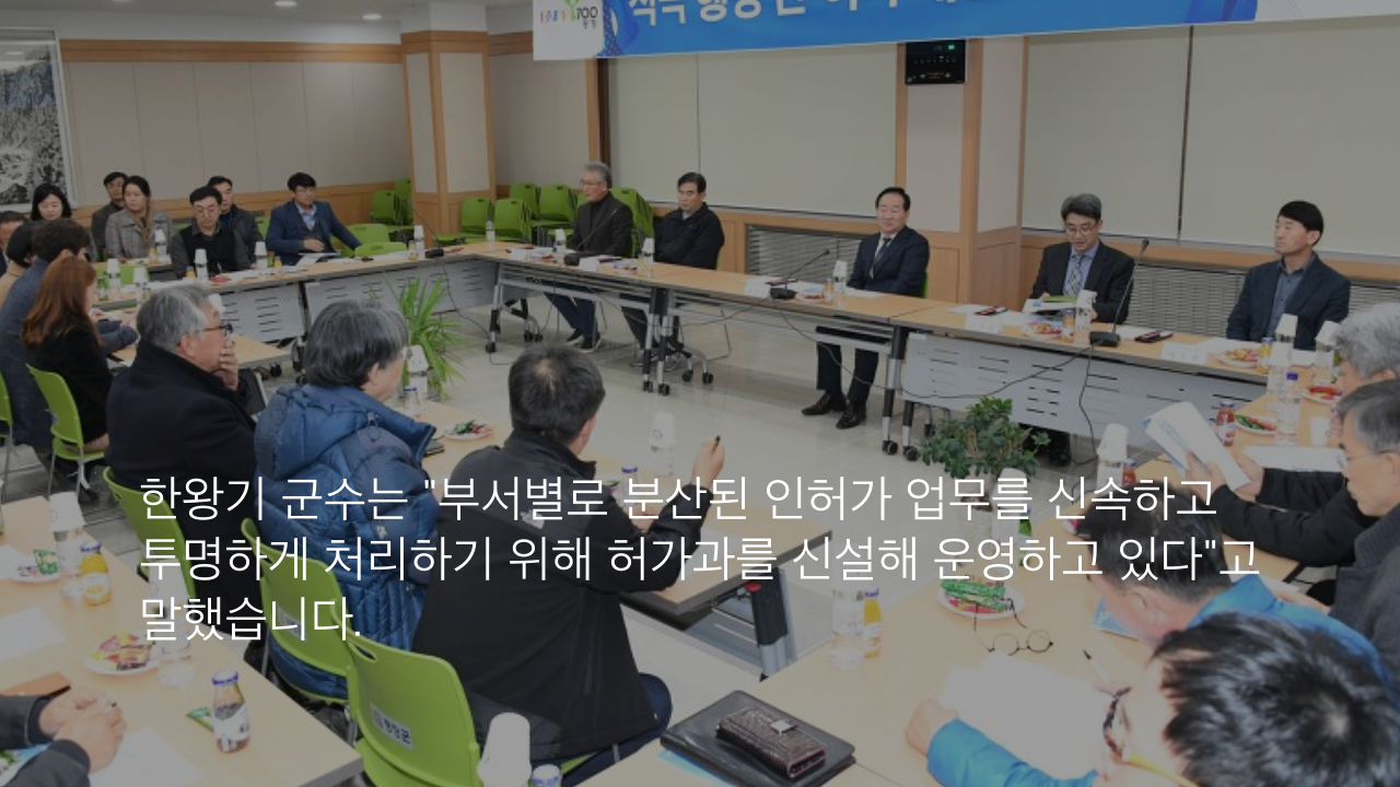 한왕기 군수는 "부서별로 분산된 인허가 업무를 신속하고 투명하게 처리하기 위해 허가과를 신설해 운영하고 있다"고 말했습니다.