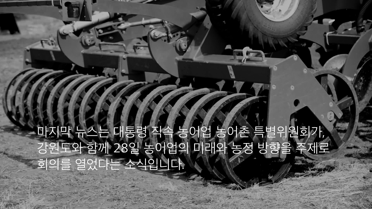 마지막 뉴스는 대통령 직속 농어업 농어촌 특별위원회가, 강원도와 함께 28일 농어업의 미래와 농정 방향을 주제로 회의를 열었다는 소식입니다.