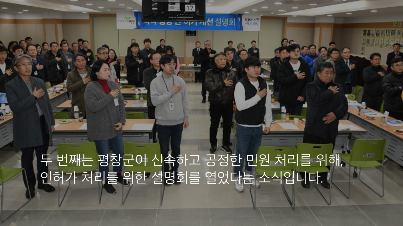 두 번째는 평창군이 신속하고 공정한 민원 처리를 위해, 인허가 처리를 위한 설명회를 열었다는 소식입니다.